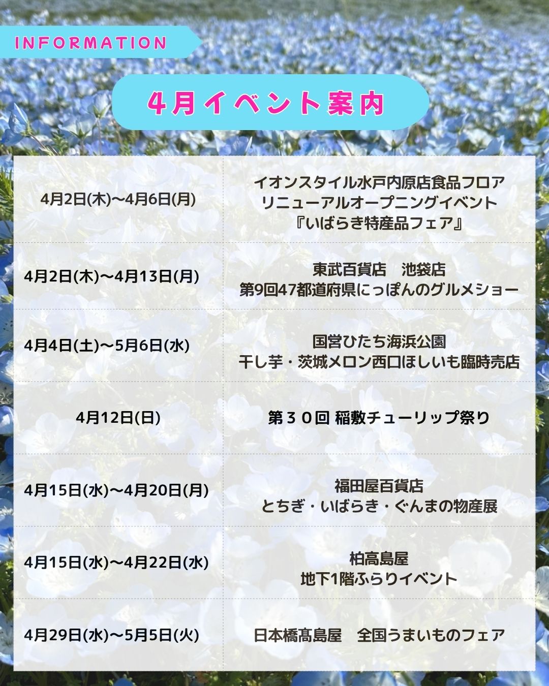 4月の催事スケジュールです