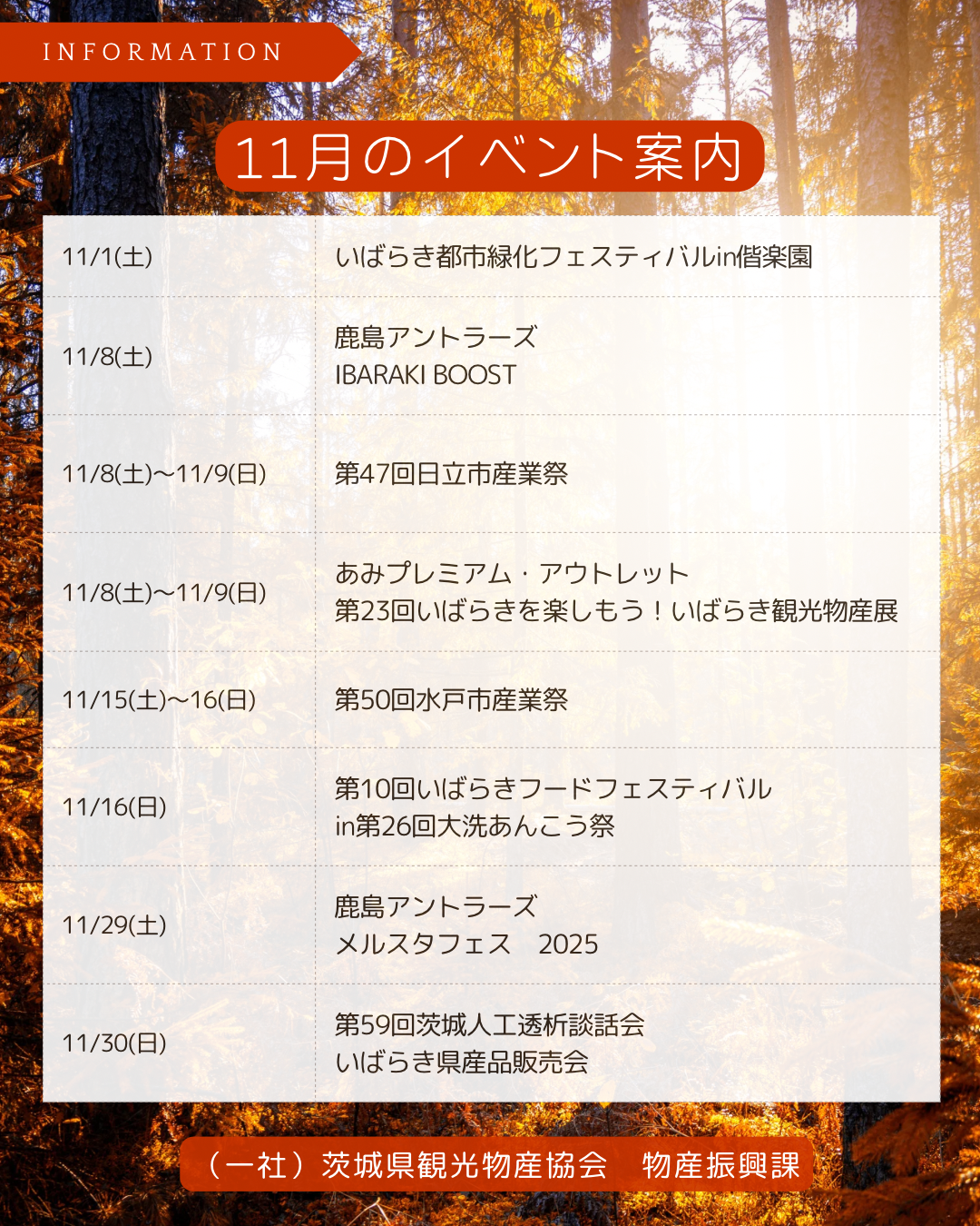11月の催事スケジュールです